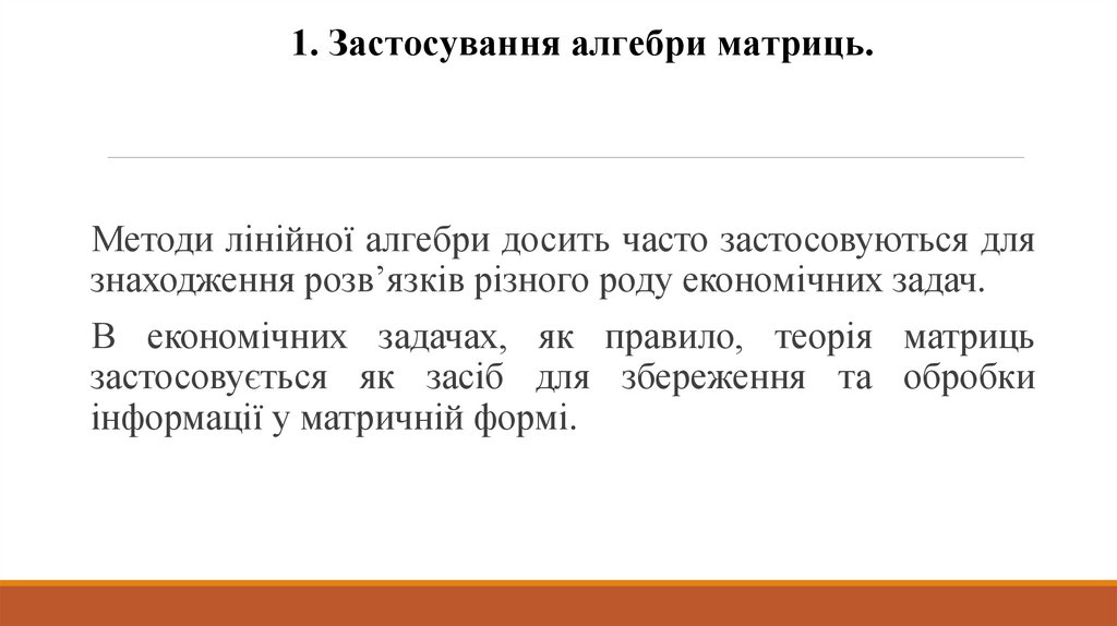 1. Застосування алгебри матриць.Методи лінійної алгебри досить часто застосовуються для