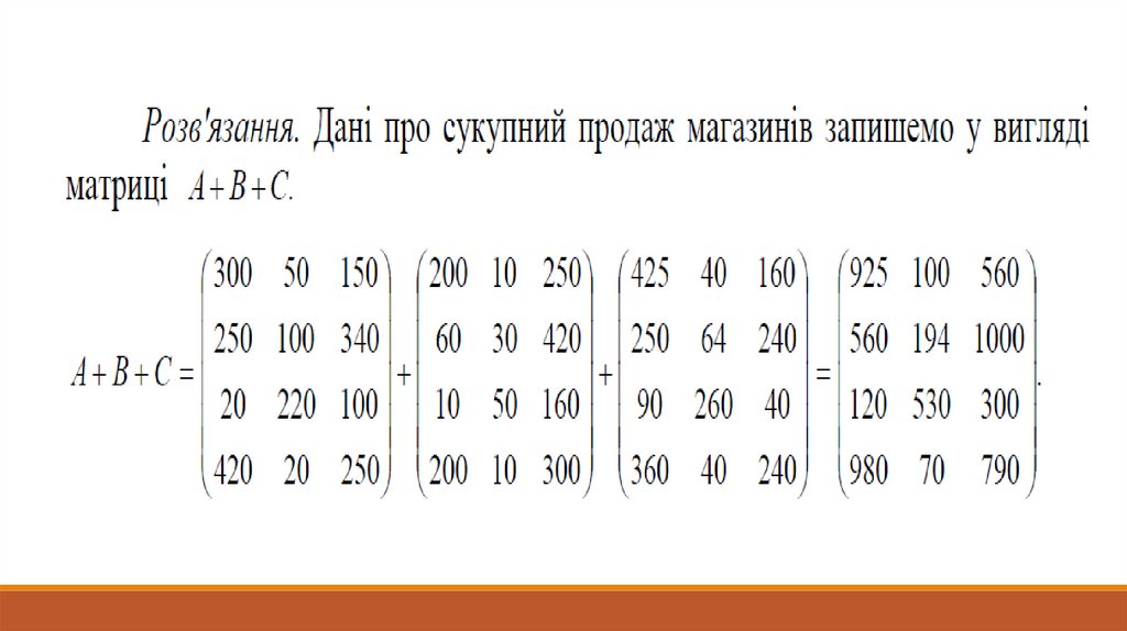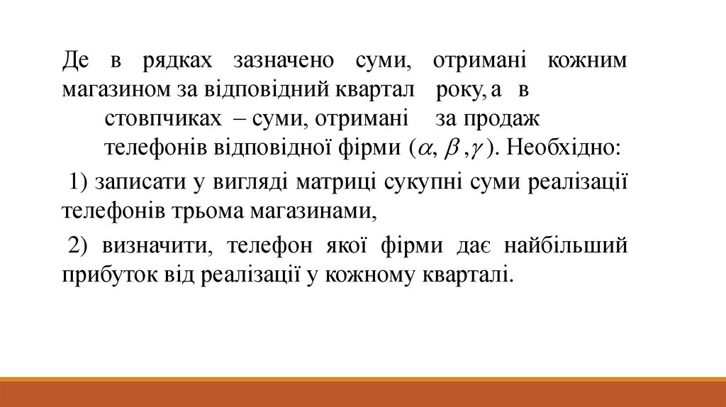 Де в рядках зазначено суми, отримані кожниммагазином за відповідний квартал року, а в