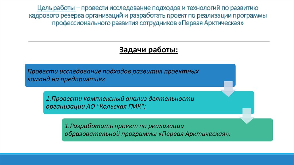 Цель работы – провести исследование подходов и технологий по развитиюкадрового резерва организаций и разработать проект по реализации программы