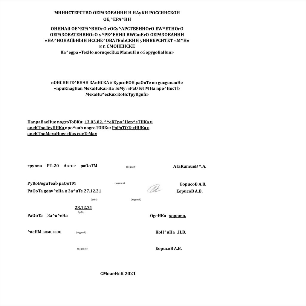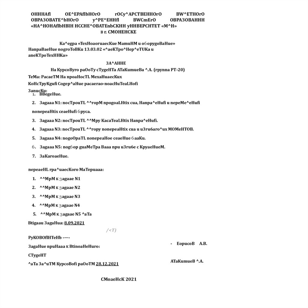 Ha KypcoByro paOoTy cTygeHTa ATaKumueBa ^.A. (rpynna PT-20)