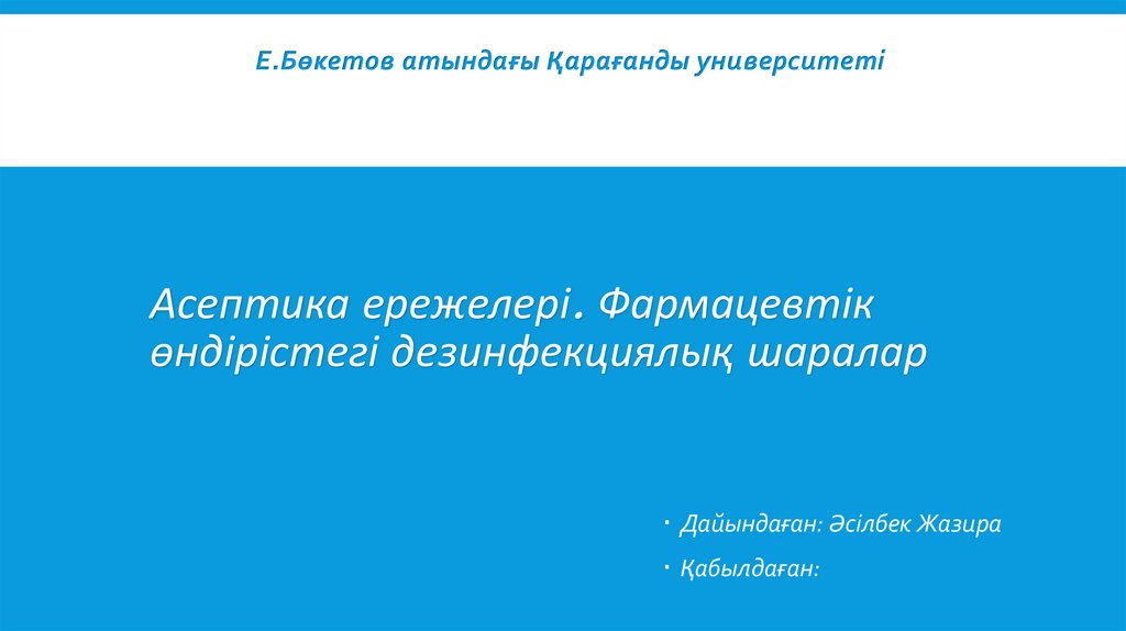 Е.Бөкетов атындағы Қарағанды университетіАсептика ережелері. Фармацевтік