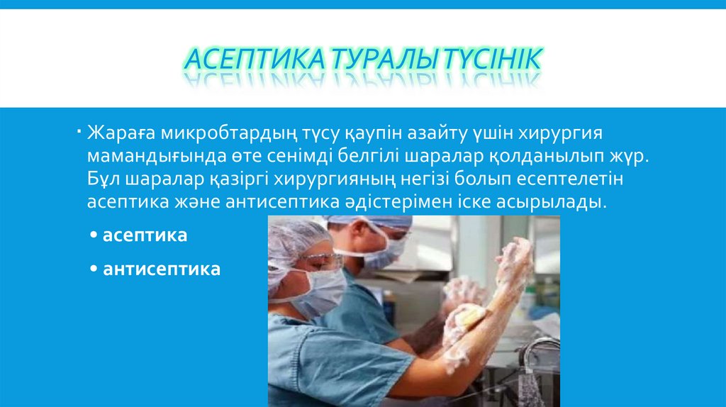 АСЕПТИКА ТУРАЛЫ ТҮСІНІКЖараға микробтардың түсу қаупін азайту үшін хирургия