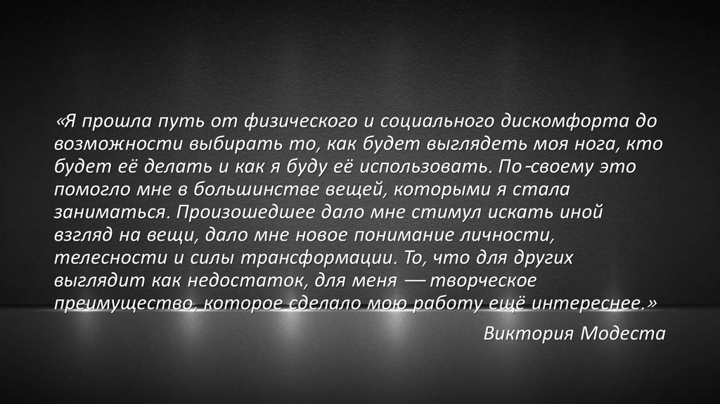«Я прошла путь от физического и социального дискомфорта довозможности выбирать то, как будет выглядеть моя нога, кто