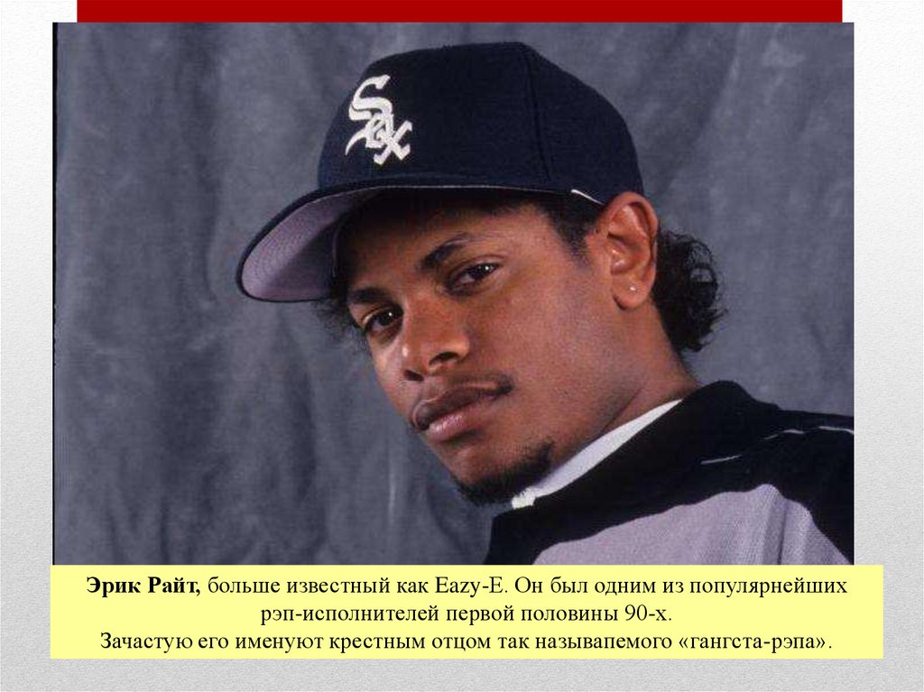 Эрик Райт, больше известный как Eazy-E. Он был одним из популярнейшихрэп-исполнителей первой половины 90-х.