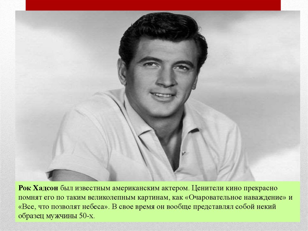 Рок Хадсон был известным американским актером. Ценители кино прекраснопомнят его по таким великолепным картинам, как «Очаровательное наваждение» и