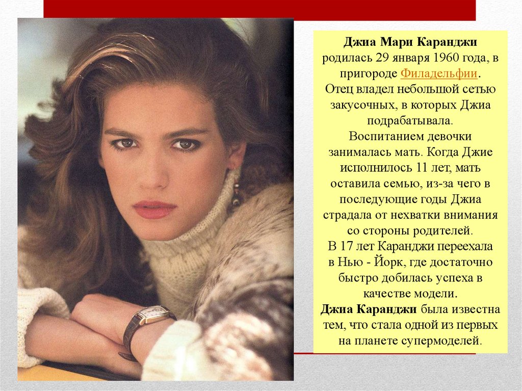 Джиа Мари Каранджиродилась 29 января 1960 года, в