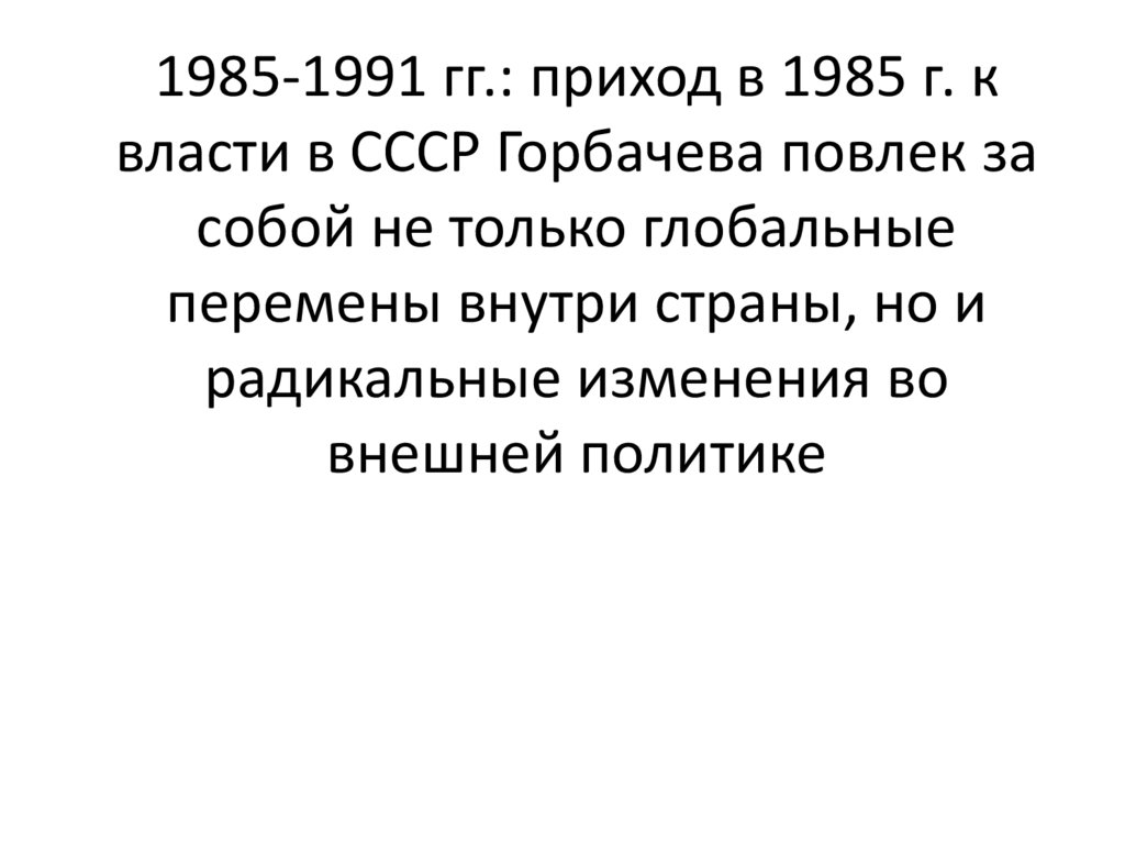 1985-1991 гг.: приход в 1985 г. квласти в СССР Горбачева повлек за