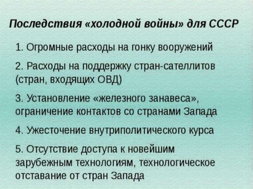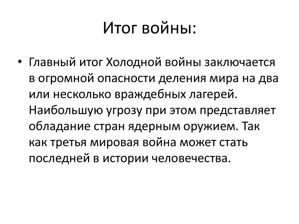Итог войны:• Главный итог Холодной войны заключается