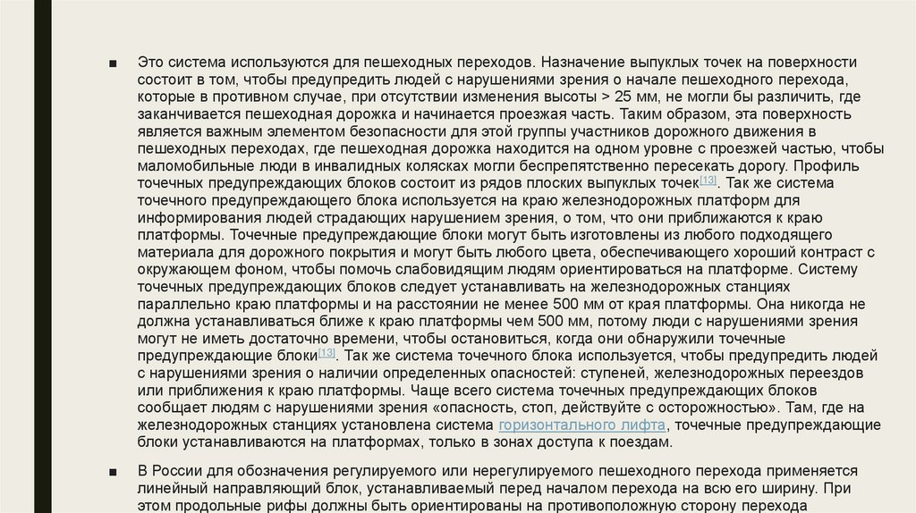 ■Это система используются для пешеходных переходов. Назначение выпуклых точек на поверхности