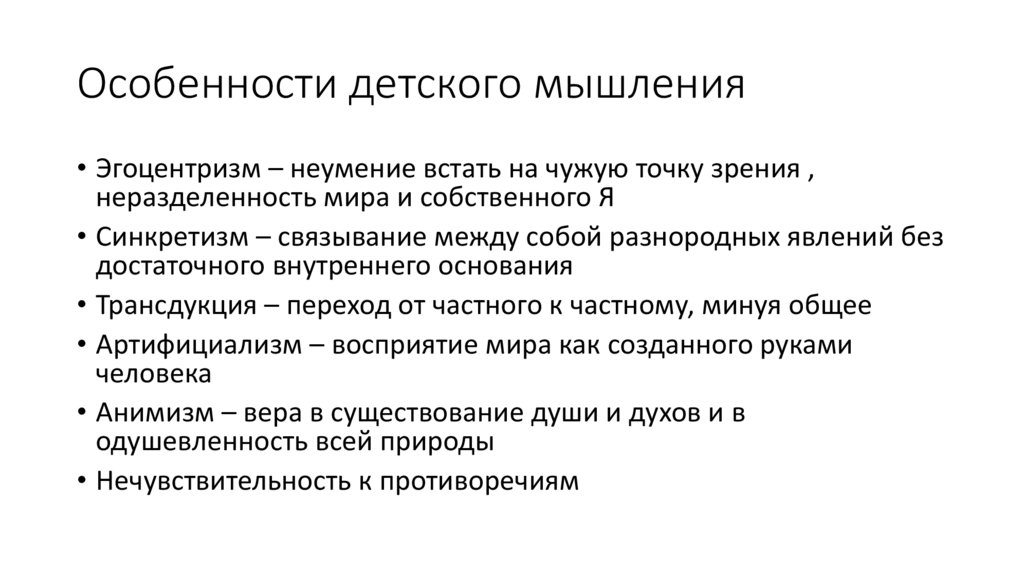 Возрастные особенности мышления в раннем, дошкольном и младшем школьном возрасте