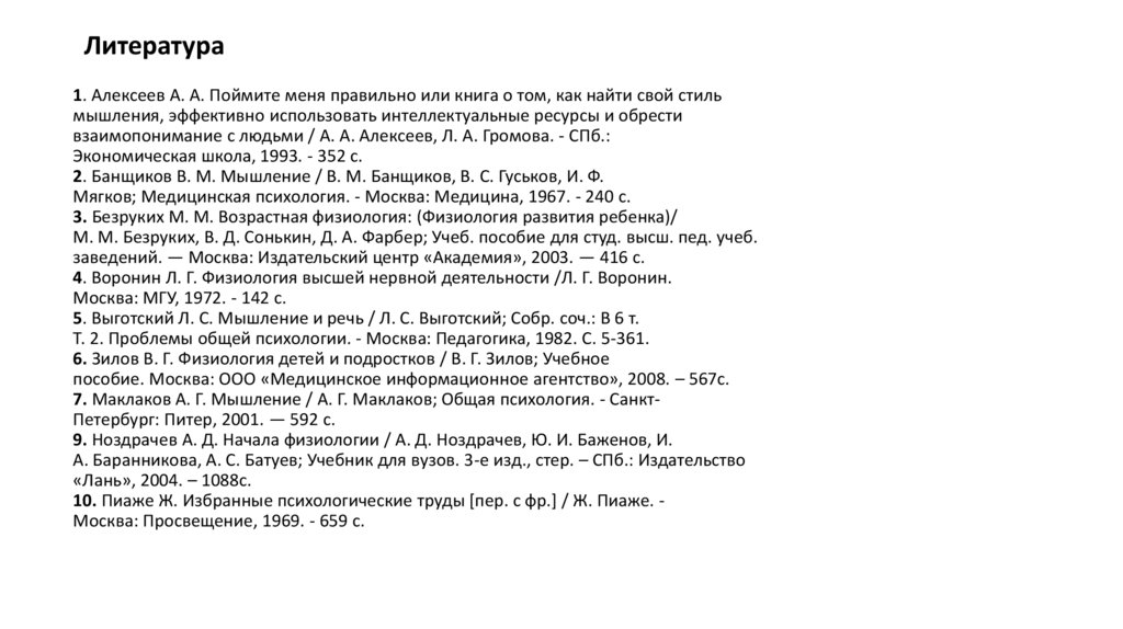 Литература1. Алексеев А. А. Поймите меня правильно или книга о том, как найти свой стиль