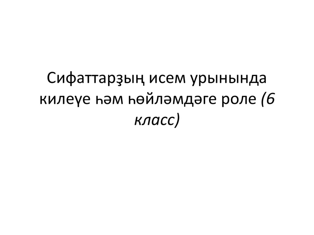 Сифаттарҙың исем урынында килеүе һәм һөйләмдәге роле (6 класс)