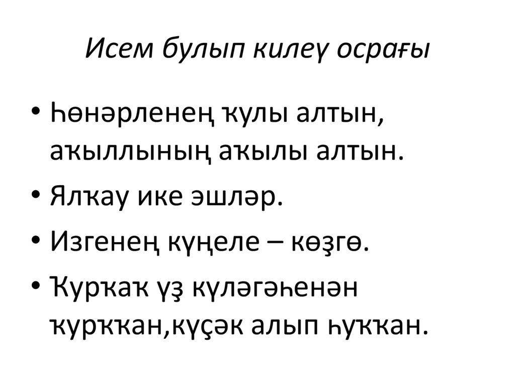 Исем булып килеү осрағы• Һөнәрленең ҡулы алтын,