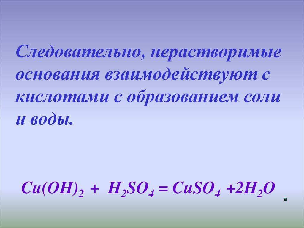 Следовательно, нерастворимыеоснования взаимодействуют с