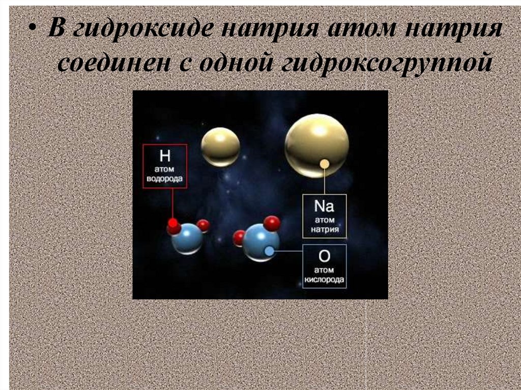 • В гидроксиде натрия атом натриясоединен с одной гидроксогруппой