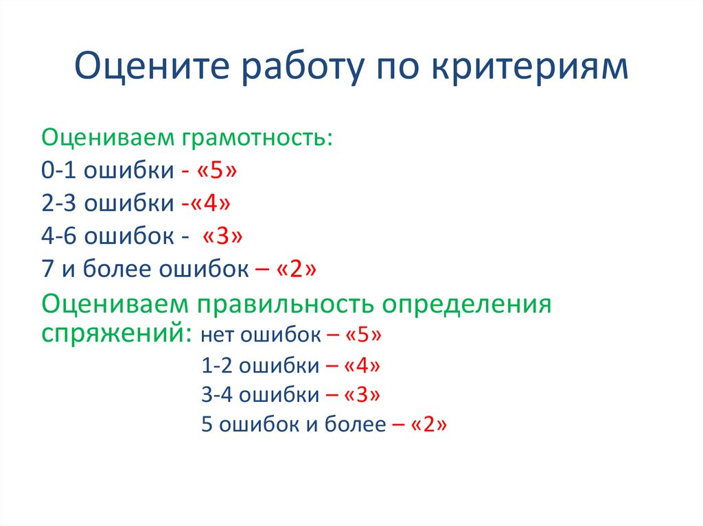 Оцените работу по критериямОцениваем грамотность: