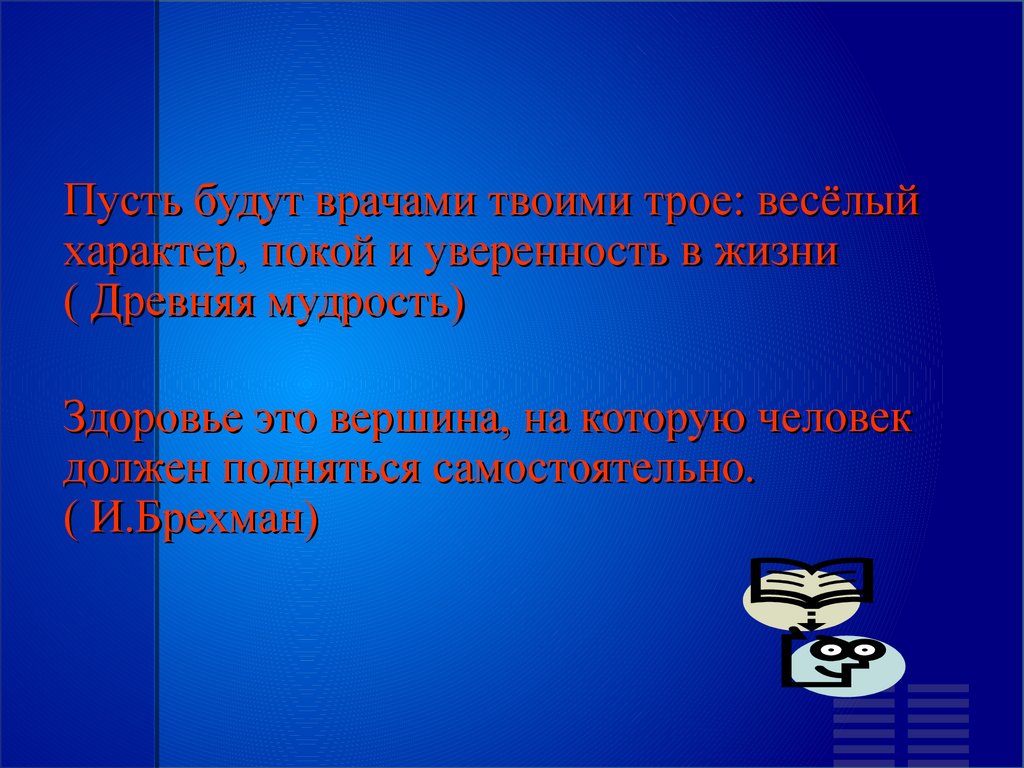 Пусть будут врачами твоими трое: весёлыйхарактер, покой и уверенность в жизни