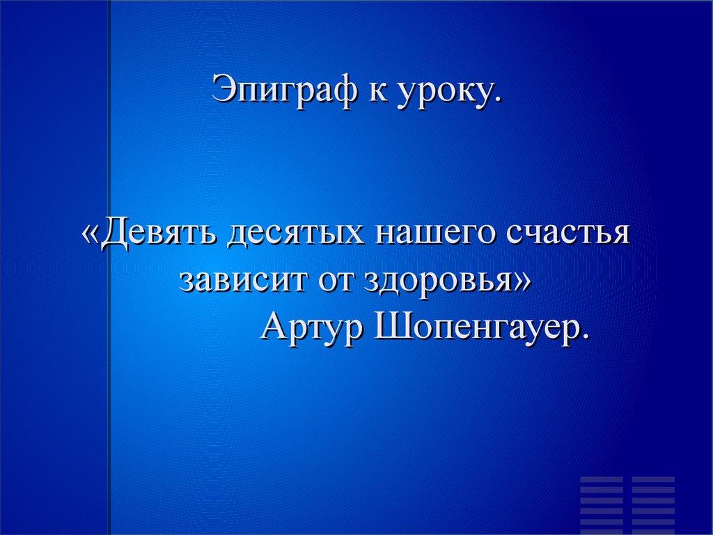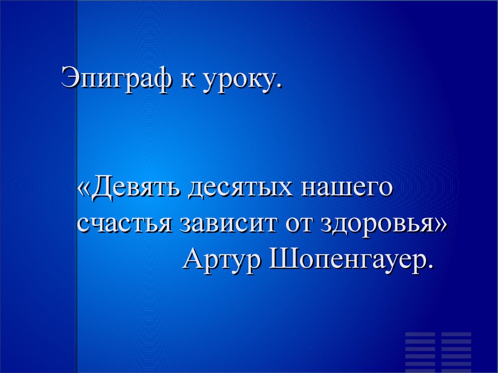 Эпиграф к уроку.«Девять десятых нашего счастья