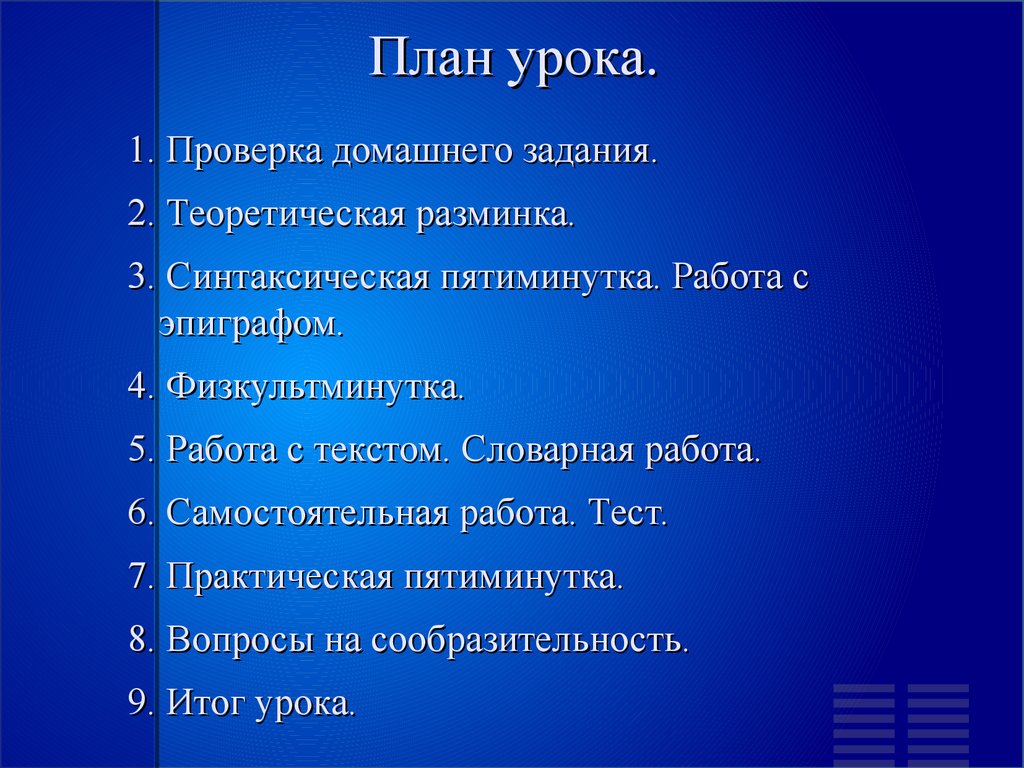 План урока.1. Проверка домашнего задания.