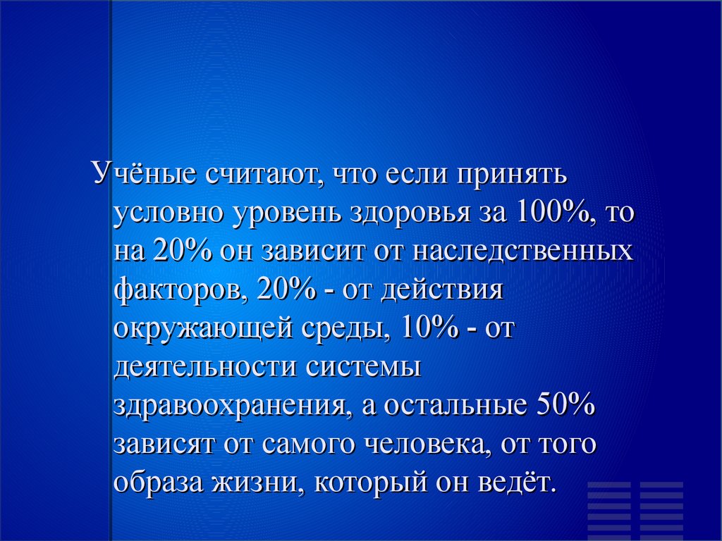 Учёные считают, что если принятьусловно уровень здоровья за 100%, то