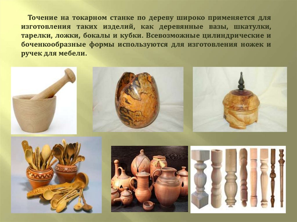 Точение на токарном станке по дереву широко применяется дляизготовления таких изделий, как деревянные вазы, шкатулки,