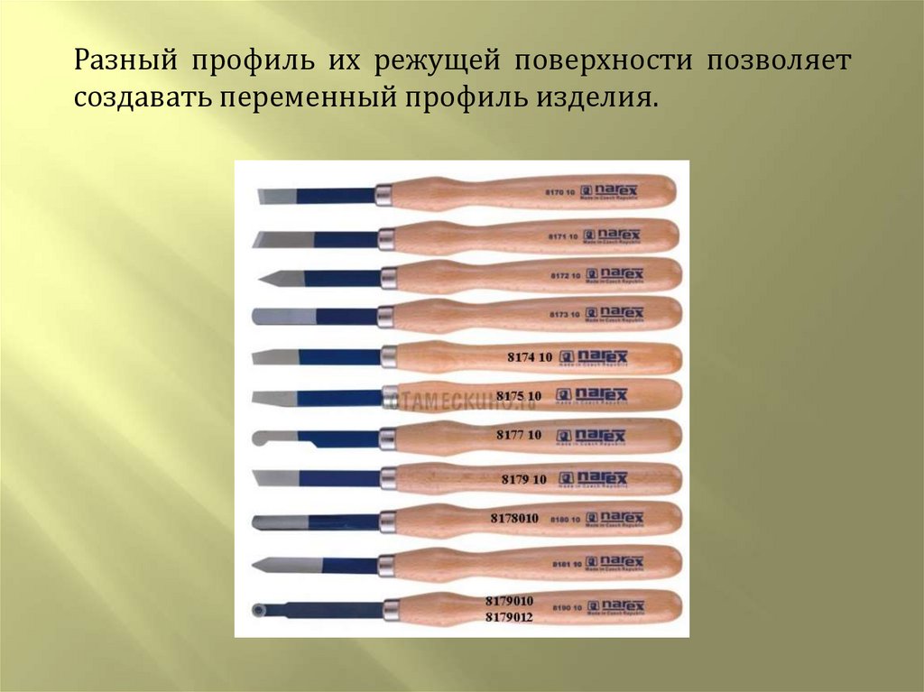 Разный профиль их режущей поверхности позволяетсоздавать переменный профиль изделия.