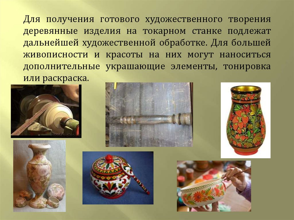 Для получения готового художественного творениядеревянные изделия на токарном станке подлежат