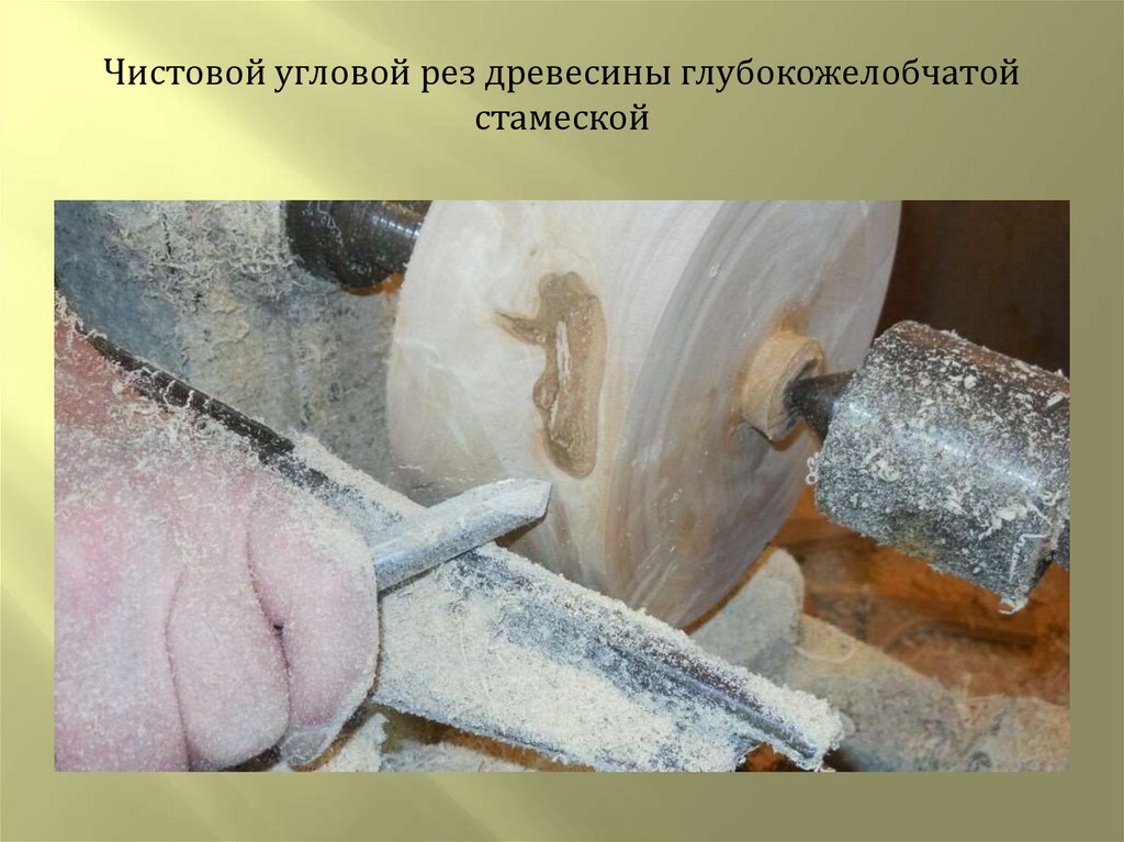 Чистовой угловой рез древесины глубокожелобчатойстамеской