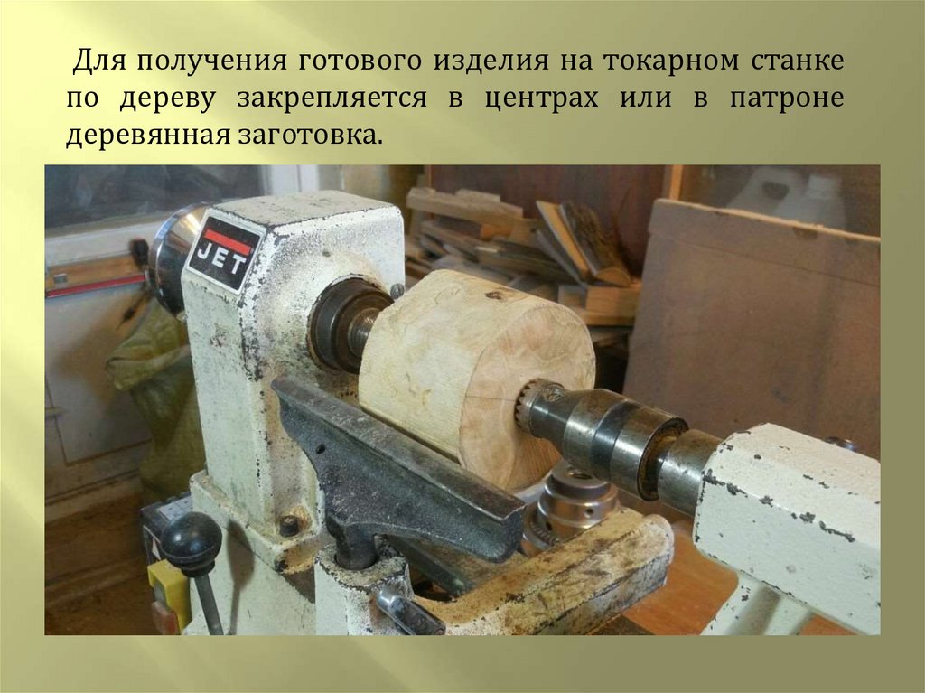 Для получения готового изделия на токарном станкепо дереву закрепляется в центрах или в патроне