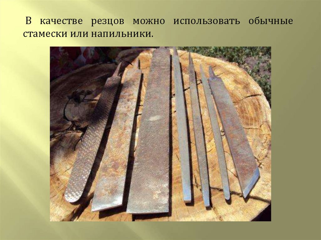В качестве резцов можно использовать обычныестамески или напильники.