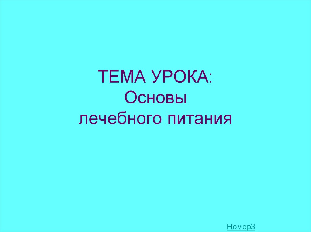 1. ТЕМА УРОКА: Основы лечебного питания