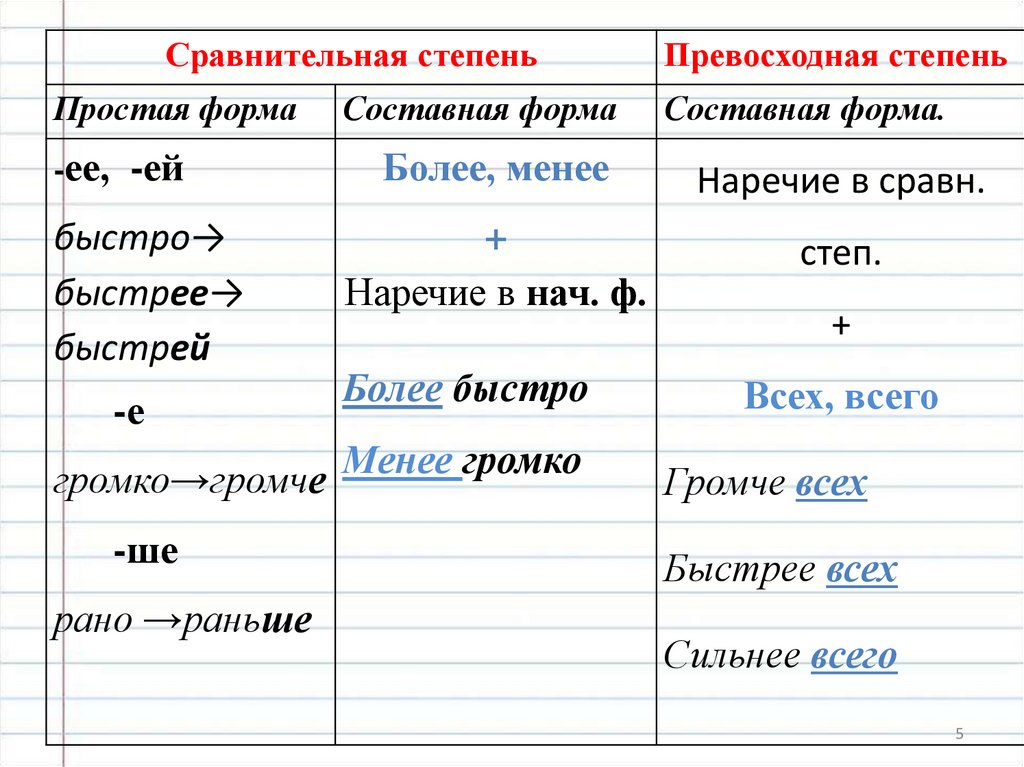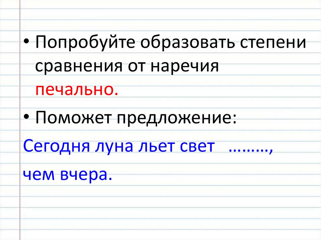 • Попробуйте образовать степенисравнения от наречия