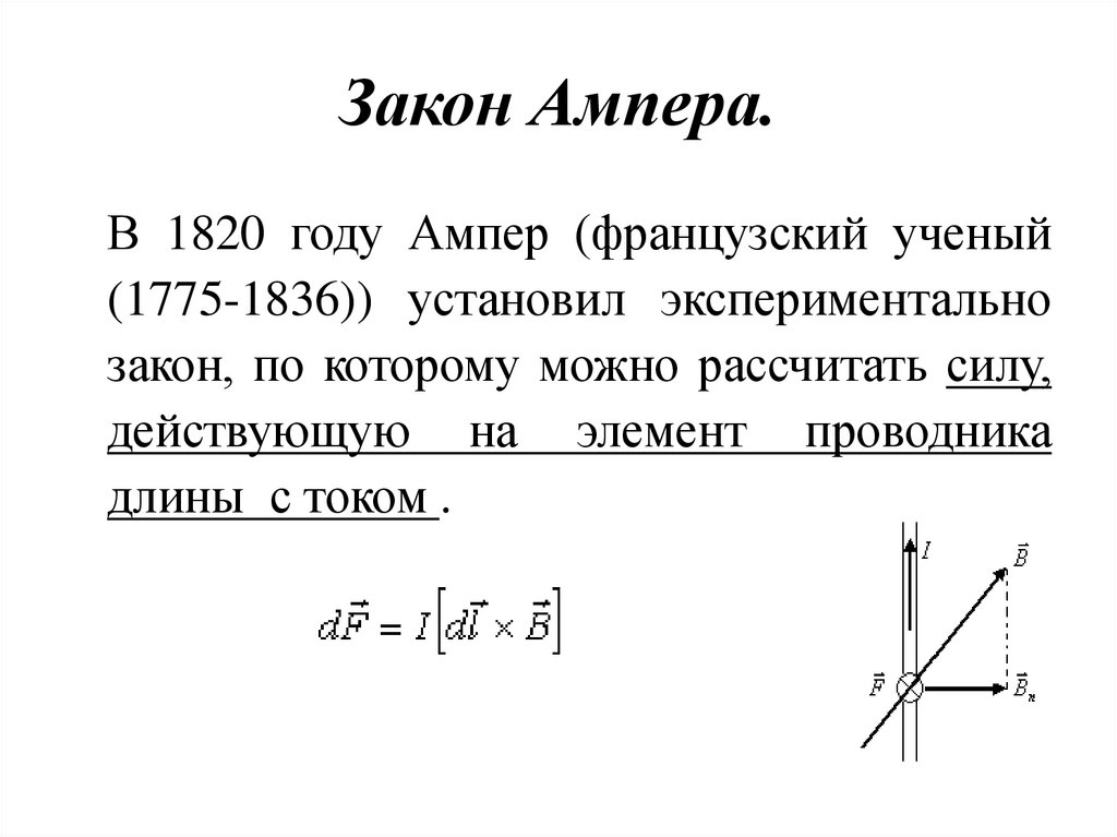 Закон Ампера.В 1820 году Ампер (французский ученый