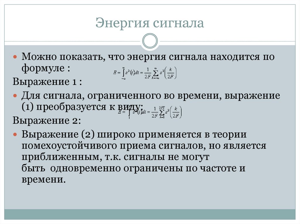 Энергия сигналаМожно показать, что энергия сигнала находится по