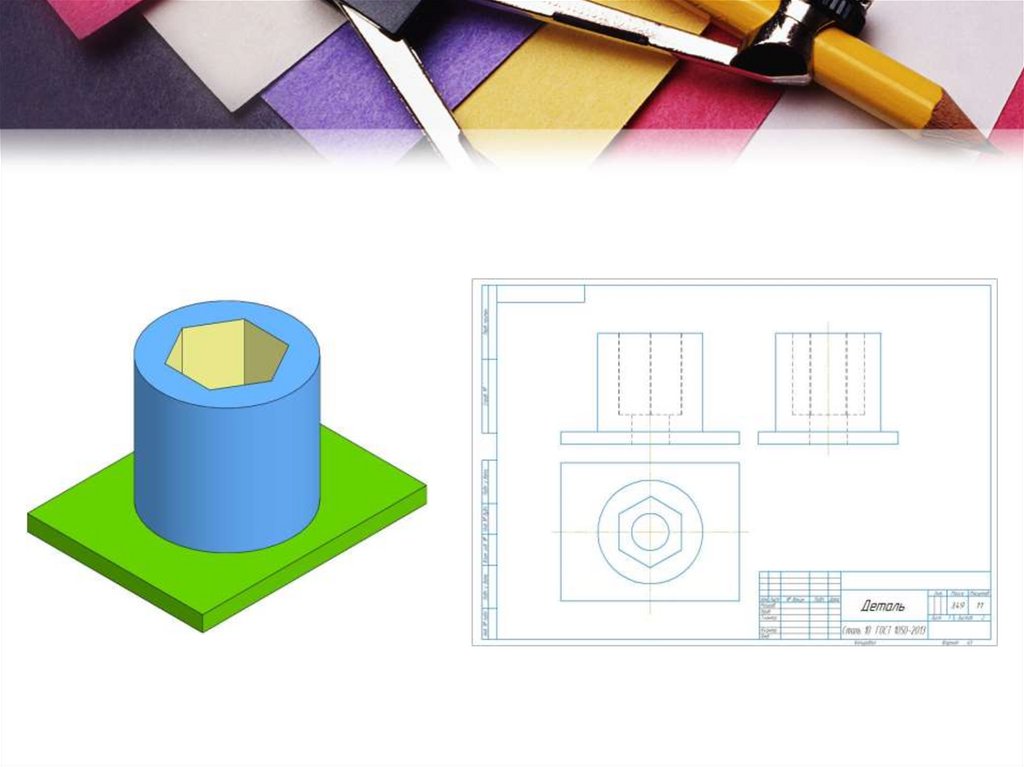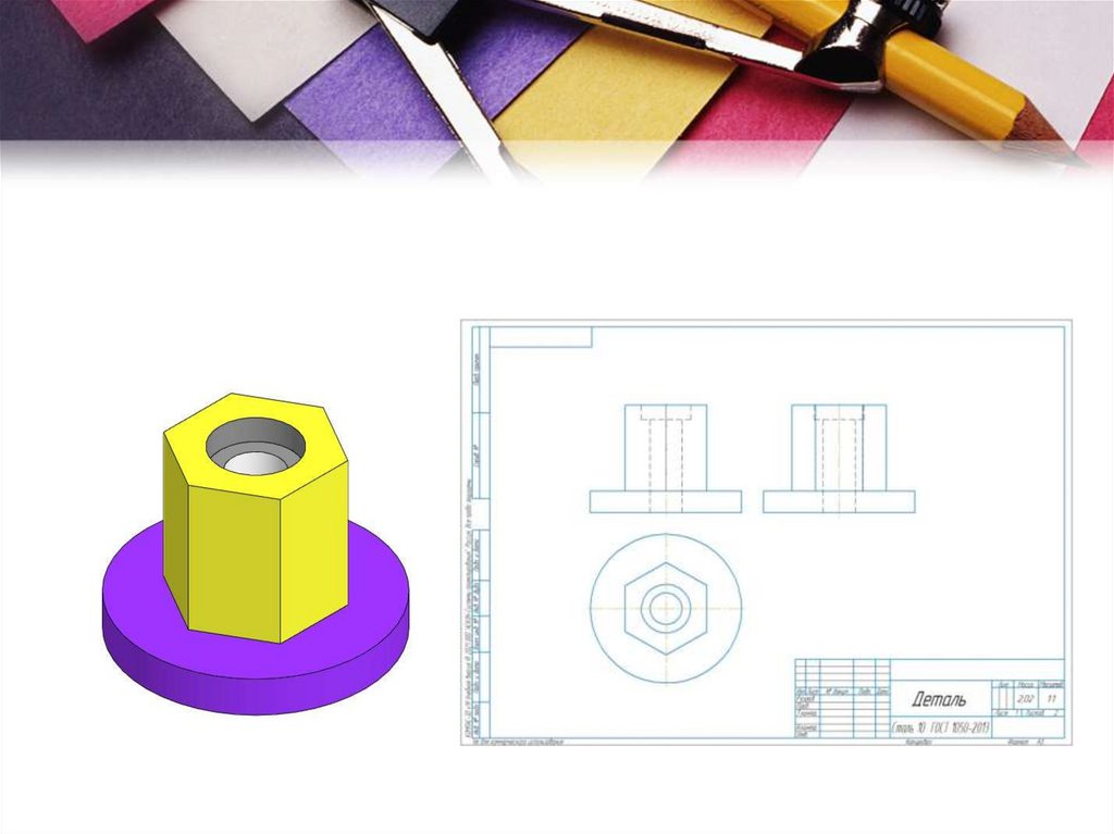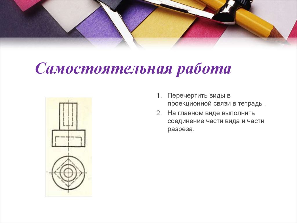Соединение части вида и части разреза, есливнутреннее ребро совпадает с линией середины