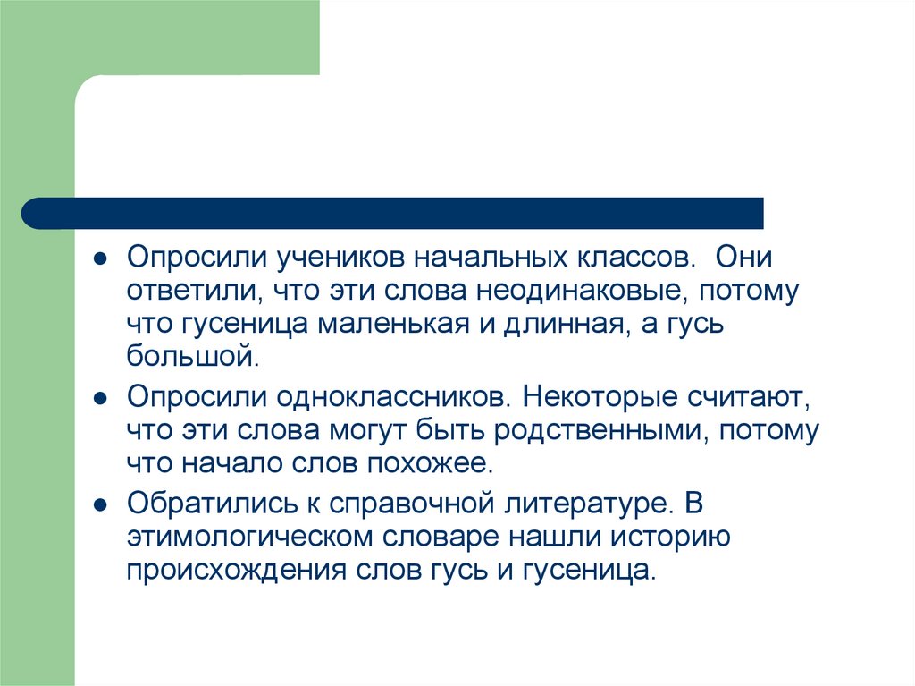 Ближайший «языковой родственник»гусеницы не гусь, а уж – от
