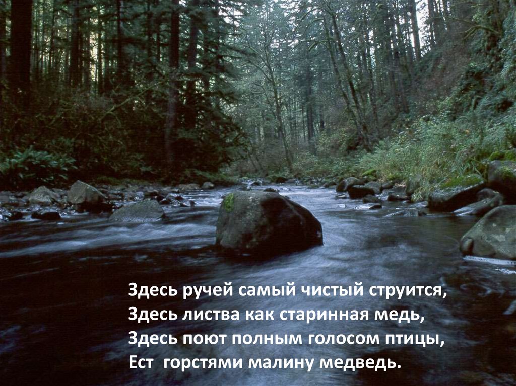 Здесь ручей самый чистый струится,Здесь листва как старинная медь,