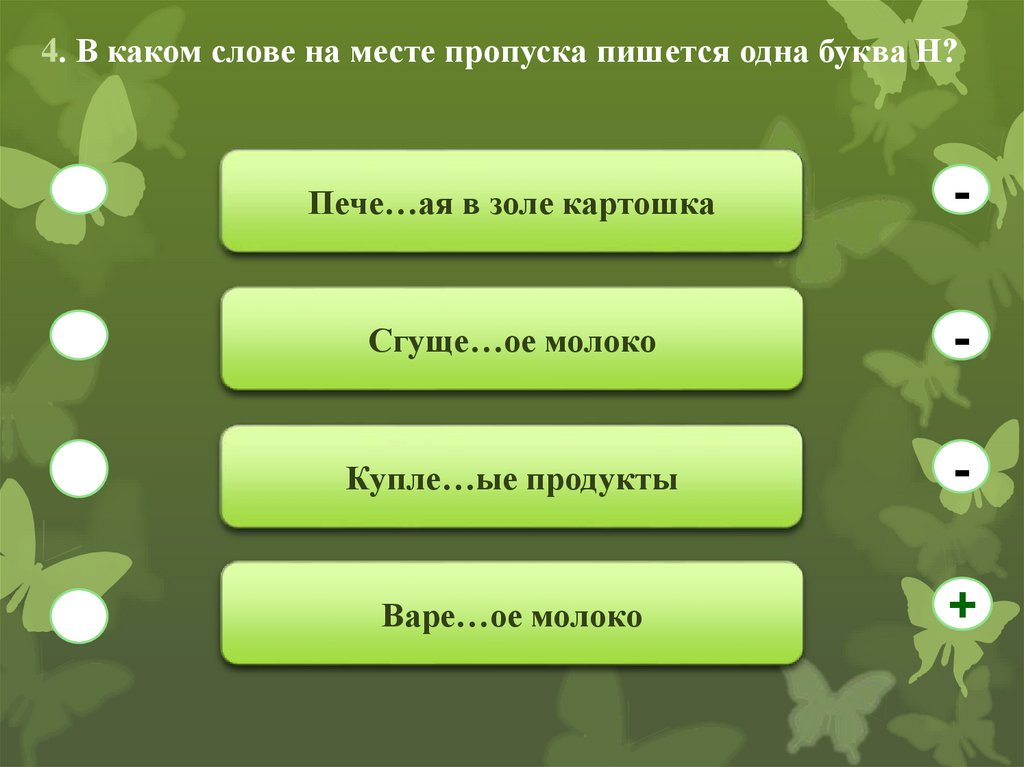 4. В каком слове на месте пропуска пишется одна буква Н?Пече…ая в золе картошка