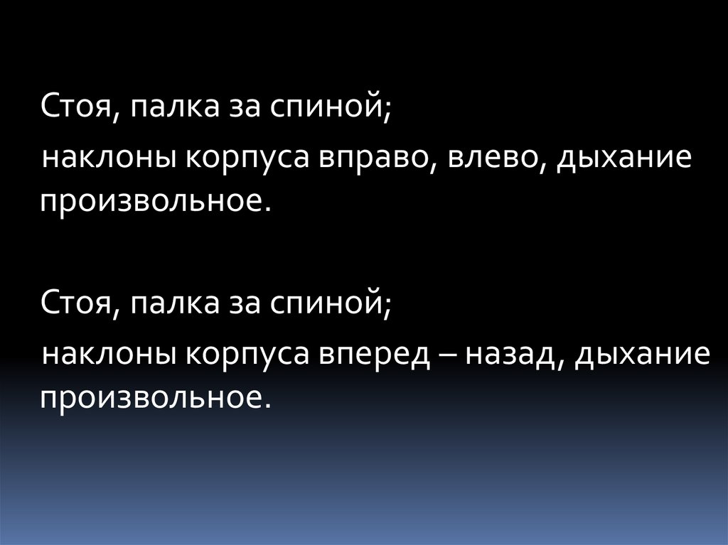 наклоны корпуса вперед – назад, дыхание
