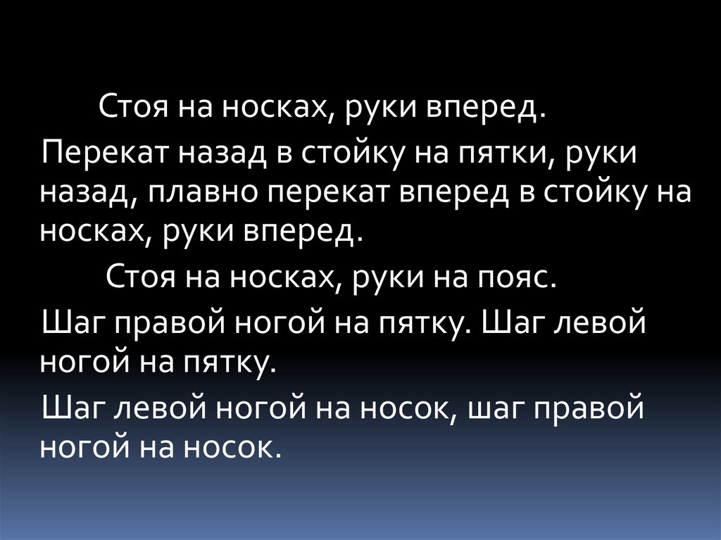 носках, руки вперед.
