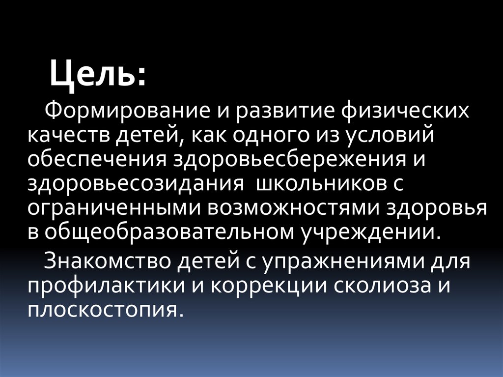 здоровья (сколиоз, плоскостопие)