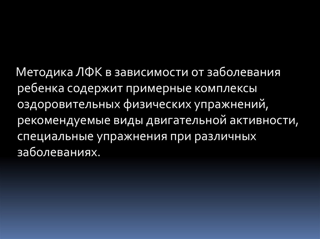 Методика ЛФК в зависимости от заболеванияребенка содержит примерные комплексы