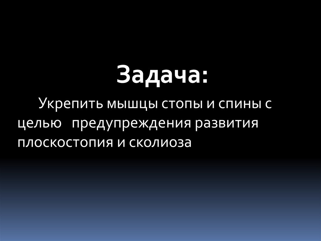 Задача:Укрепить мышцы стопы и спины с