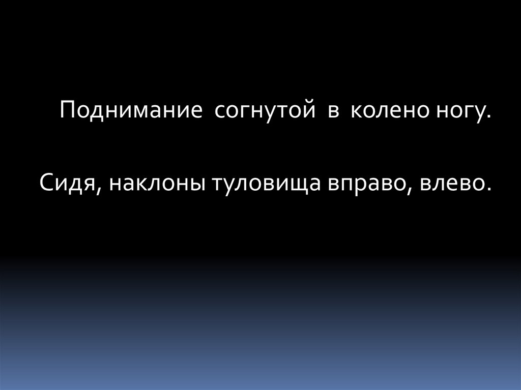 Поднимание согнутой в колено ногу.Сидя, наклоны туловища вправо, влево.