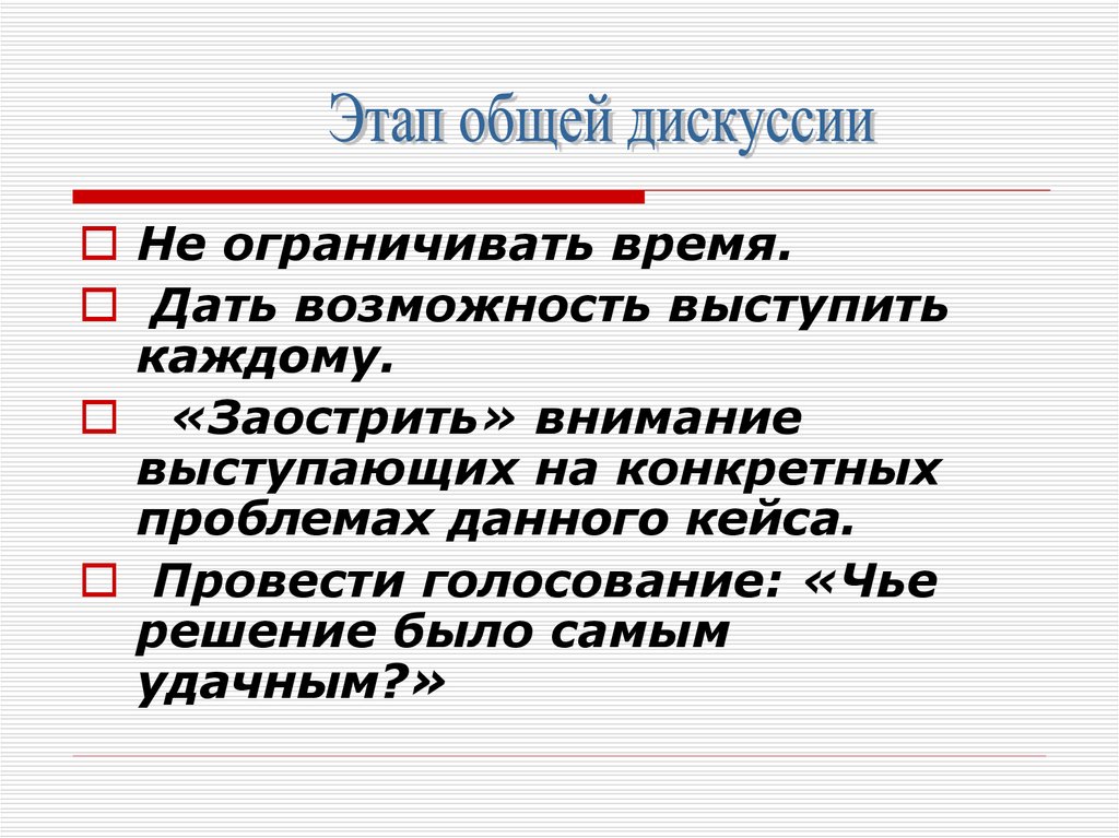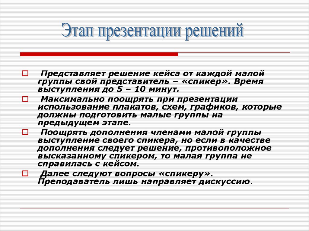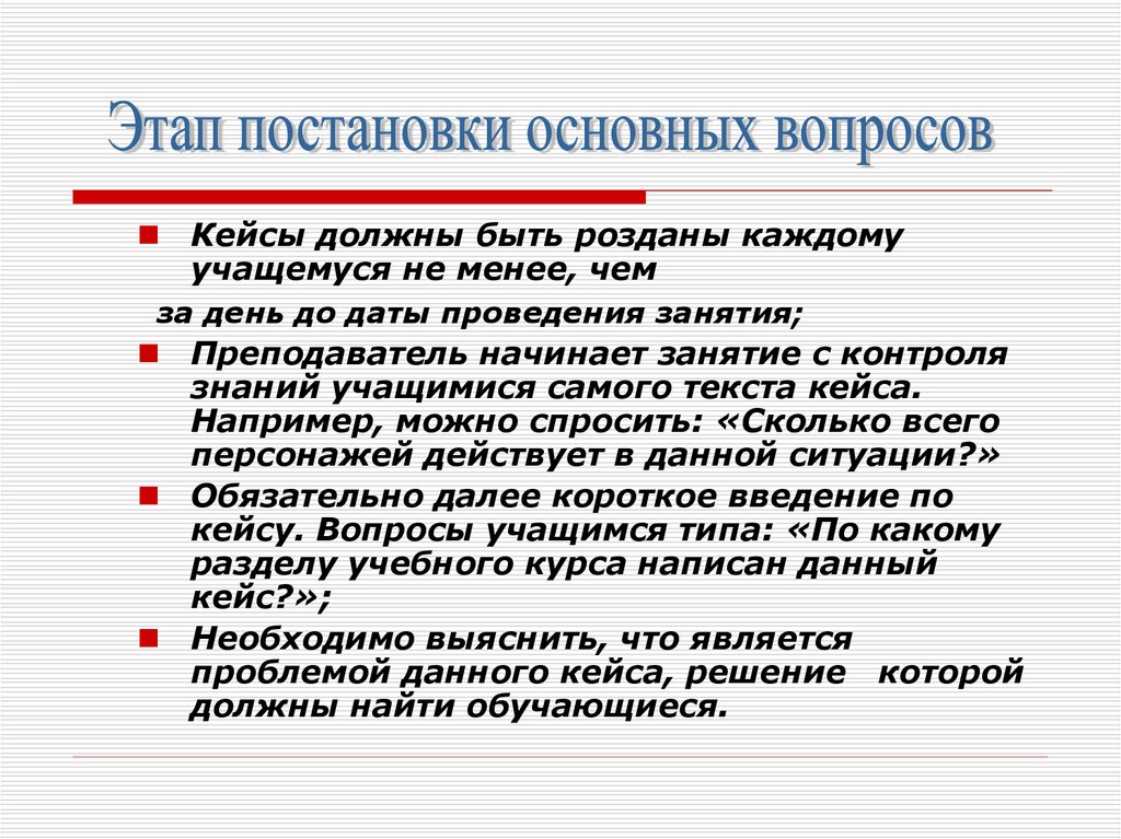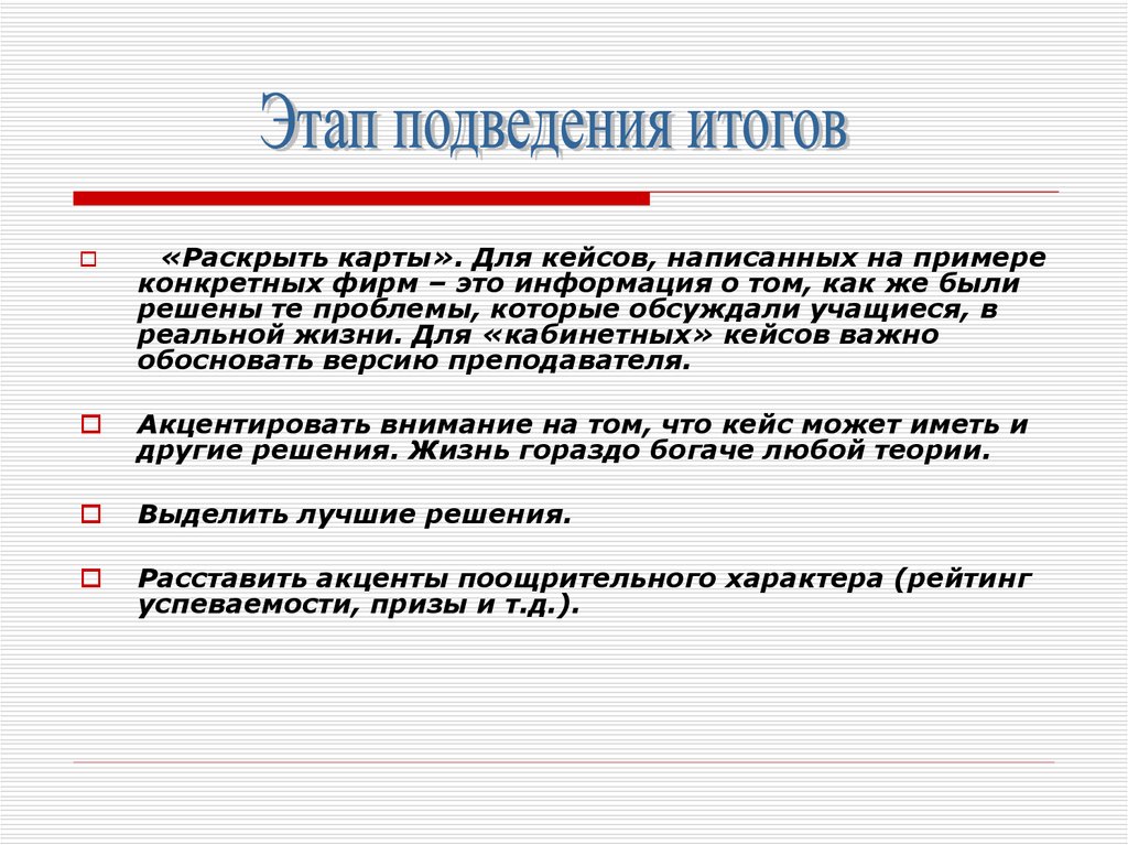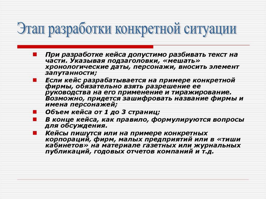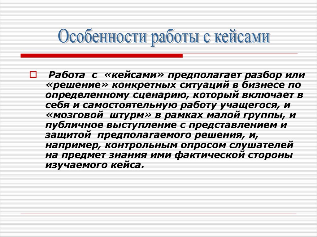 Работа с «кейсами» предполагает разбор или«решение» конкретных ситуаций в бизнесе по