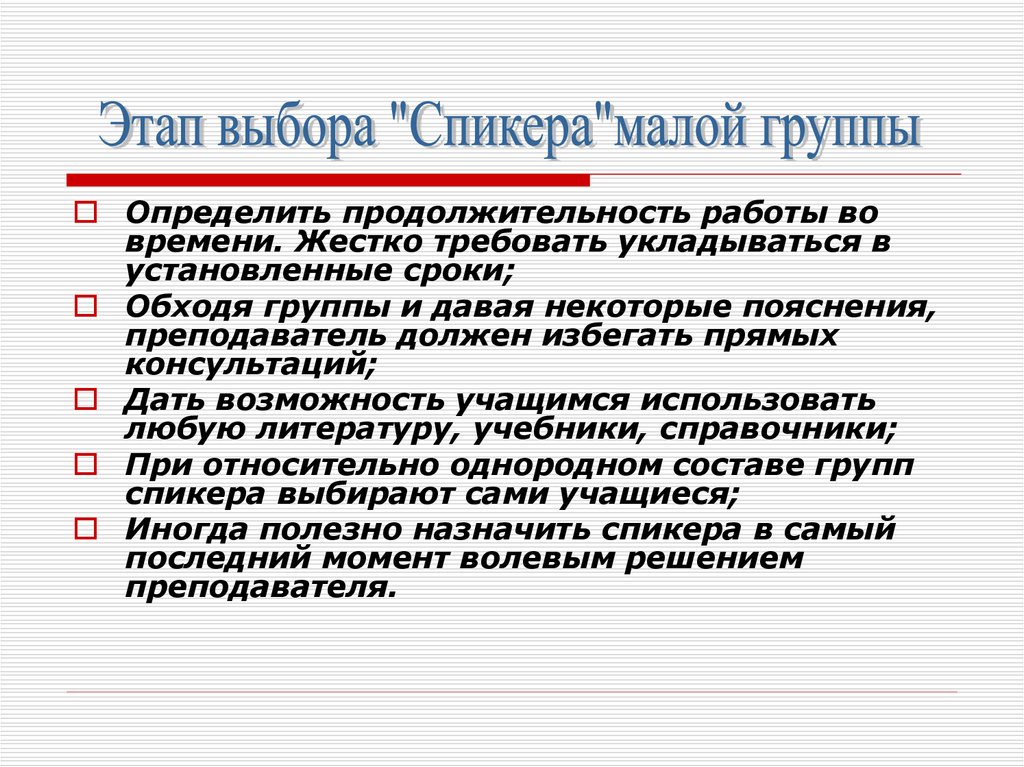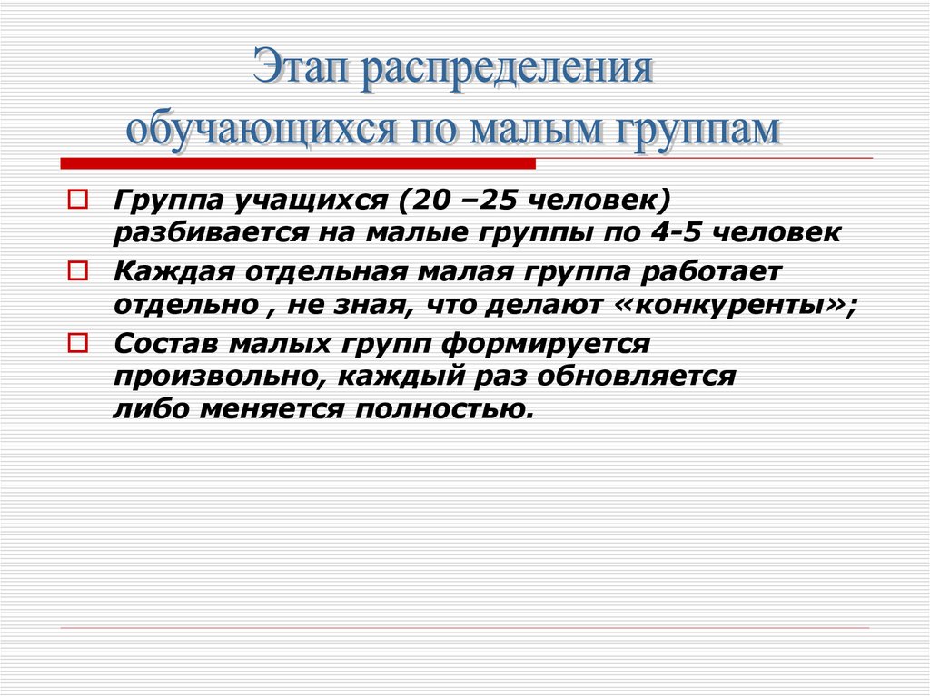 Группа учащихся (20 –25 человек)разбивается на малые группы по 4-5 человек