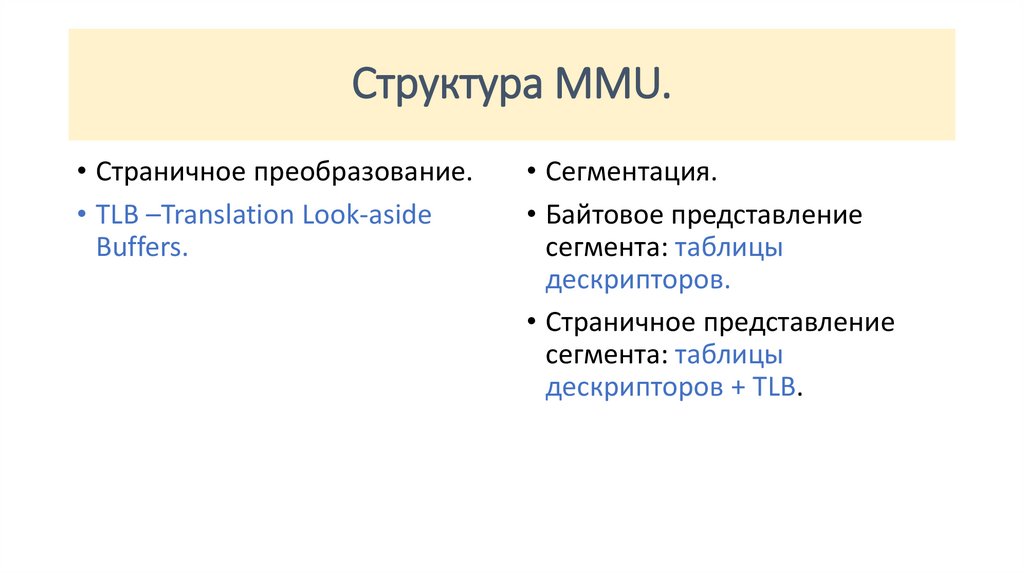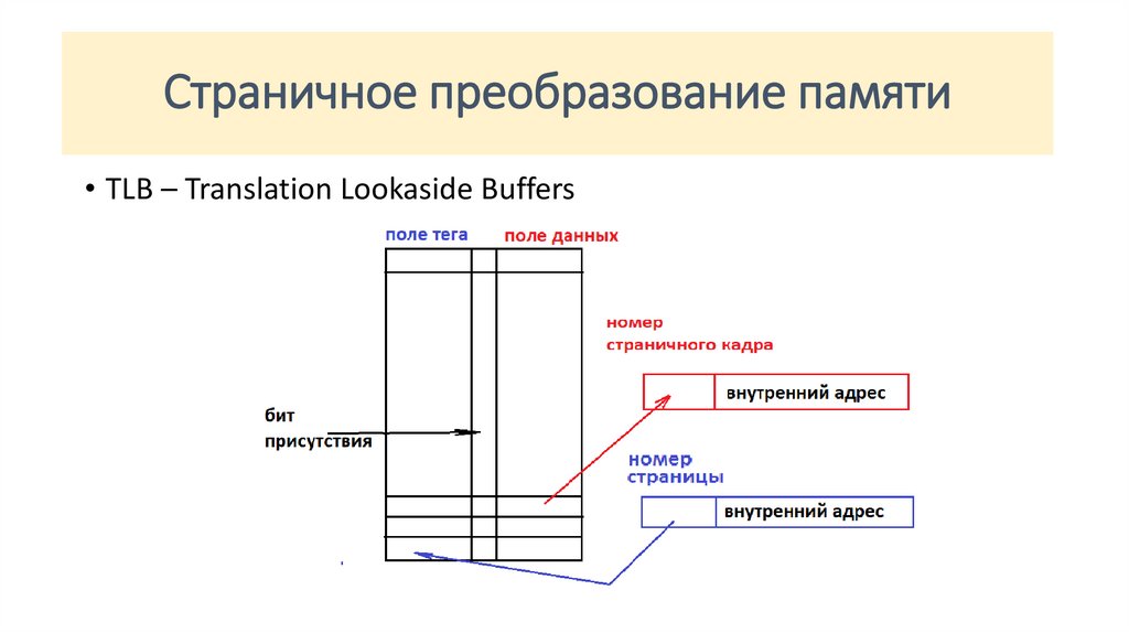 Страничное преобразование памяти• TLB – Translation Lookaside Buffers