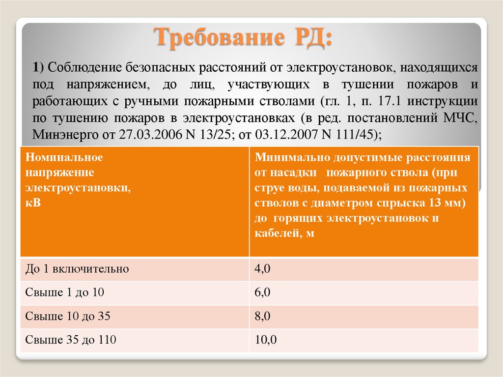 Требование РД:1) Соблюдение безопасных расстояний от электроустановок, находящихся