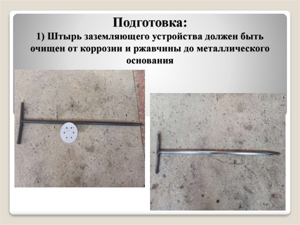 Подготовка:1) Штырь заземляющего устройства должен быть
