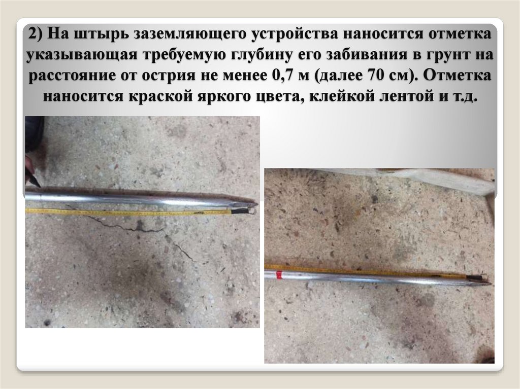2) На штырь заземляющего устройства наносится отметкауказывающая требуемую глубину его забивания в грунт на